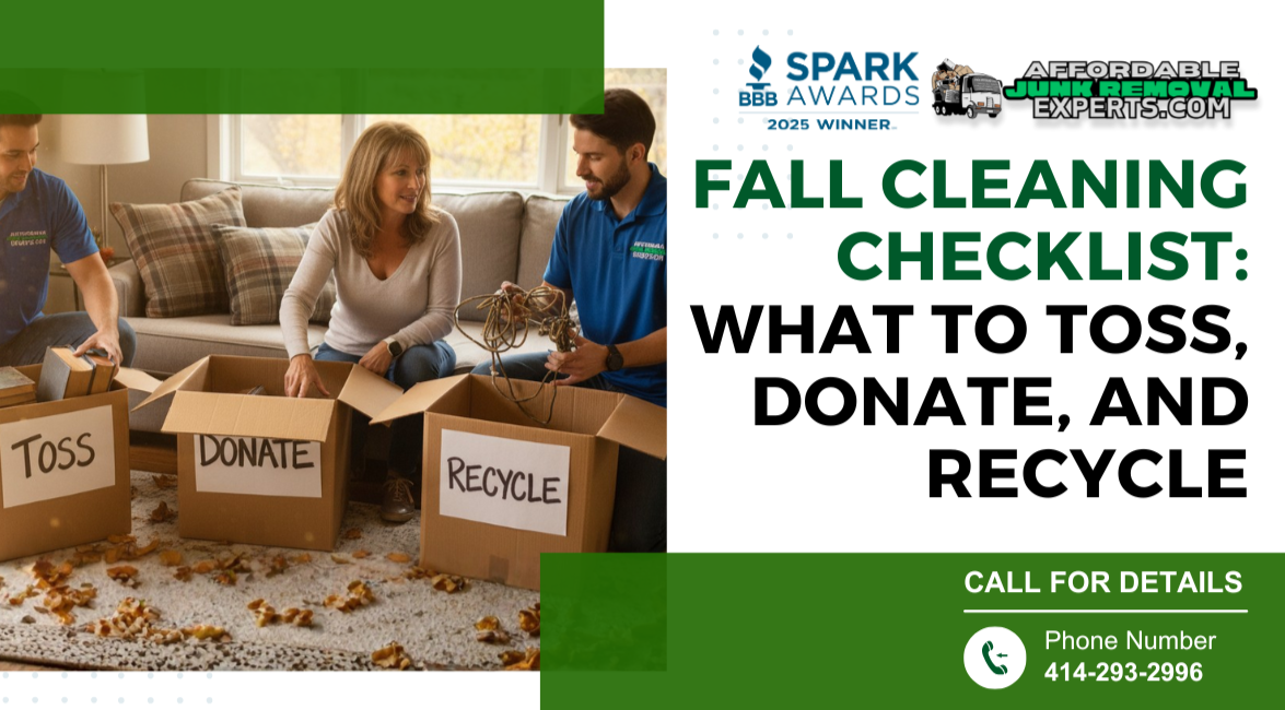 Holiday Prep, Junk Removal, Home Organization, Holiday Tips, Cleaning Services, Winter Services, Moving Services, Holiday, business updates, Seasonal Greetings, Moving Tips, Fall Cleaning Lucas Lorenzo 10/13/25 Holiday Prep, Junk Removal, Home Organization, Holiday Tips, Cleaning Services, Winter Services, Moving Services, Holiday, business updates, Seasonal Greetings, Moving Tips, Fall Cleaning Lucas Lorenzo 10/13/25 Fall Cleaning Checklist: Toss, Donate, Recycle Affordable Furniture Removal and Junk Removal Services in Milwaukee, WI. Read More